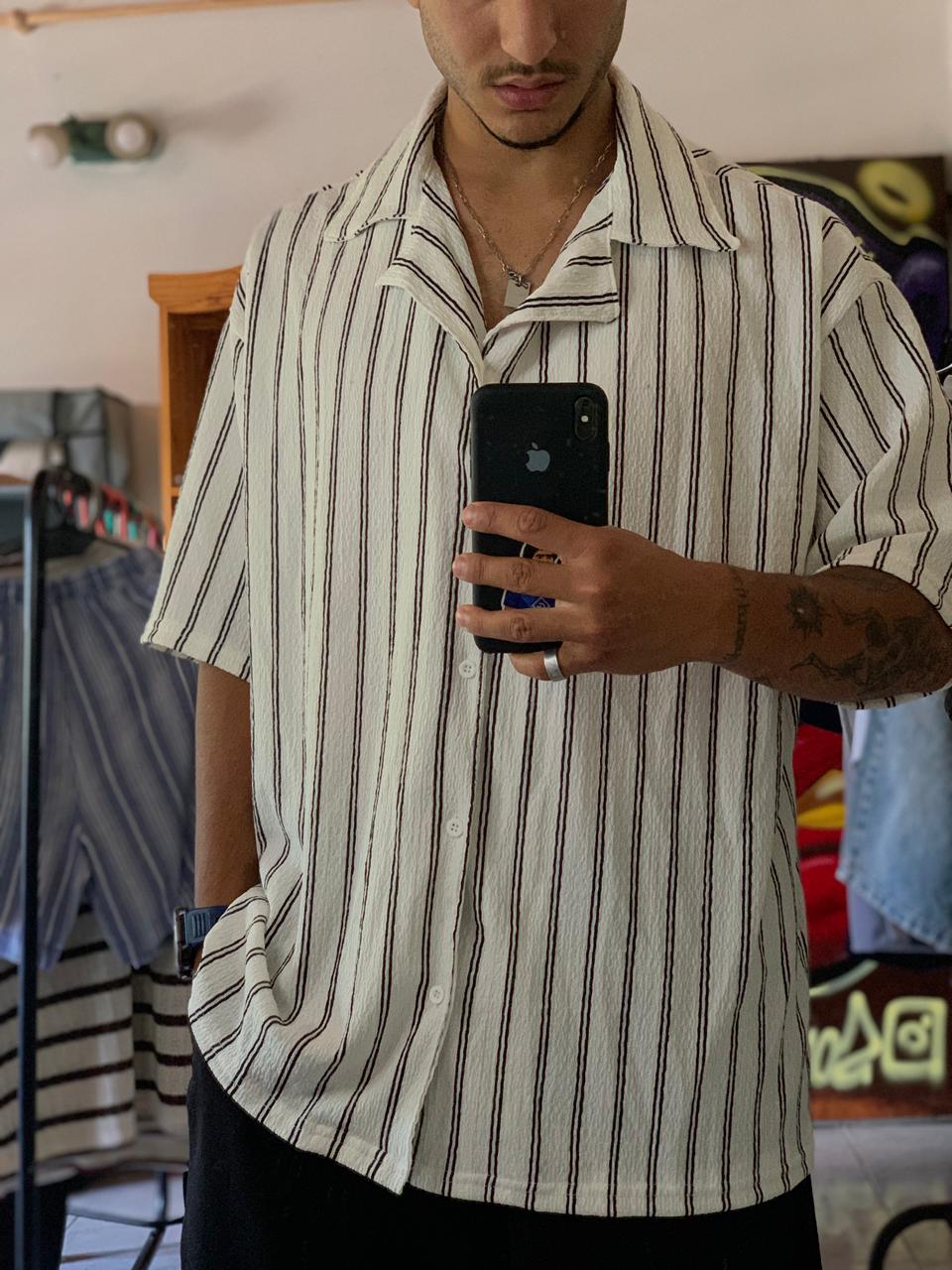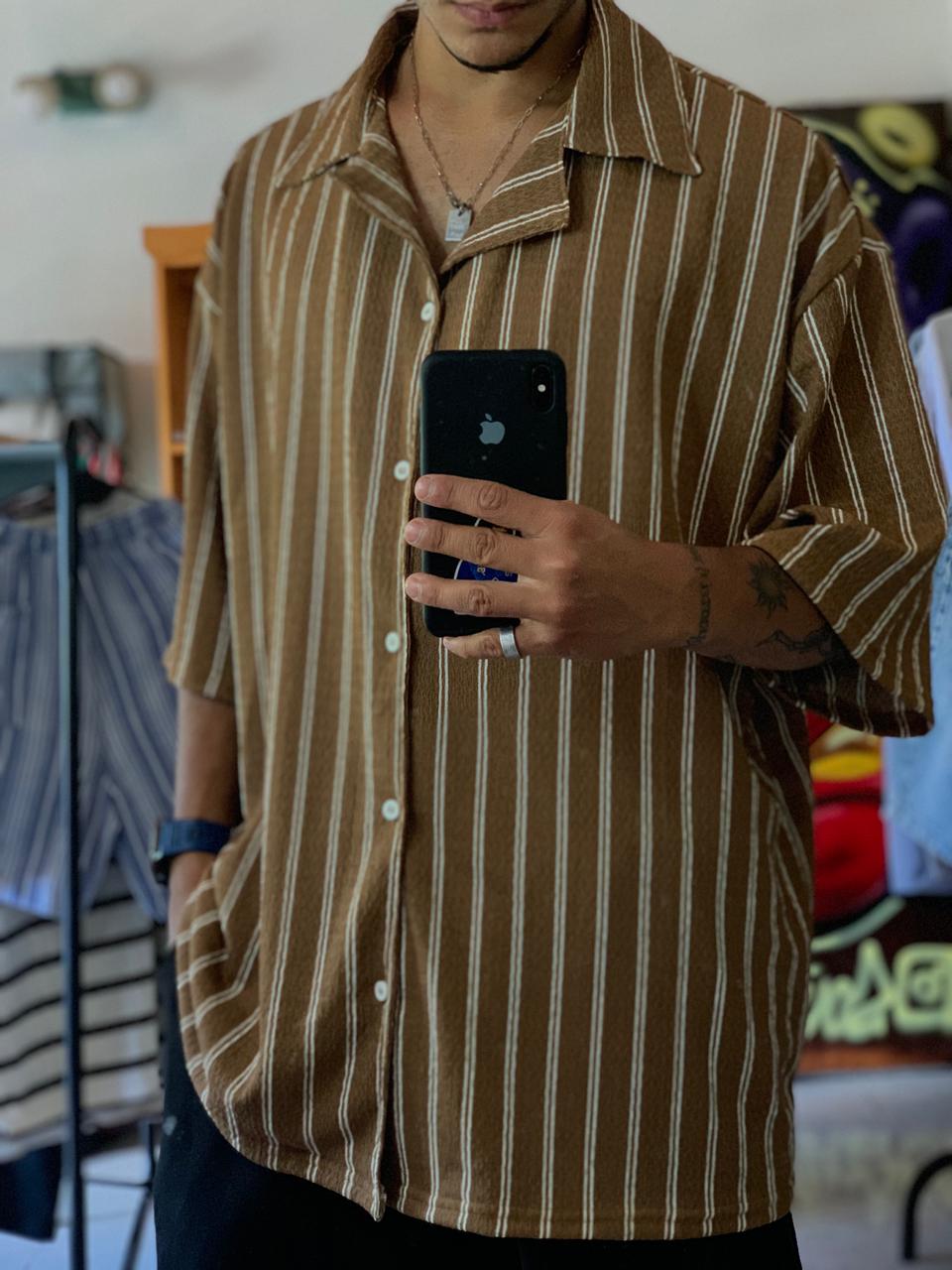 Camisa de tela similar a lino.